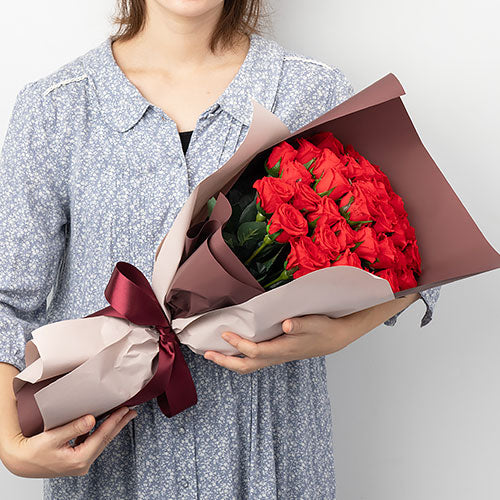 花びらメッセージ 赤バラ33本の花束 プリザーブドフラワー -生まれ変わっても愛するの意味を込めた