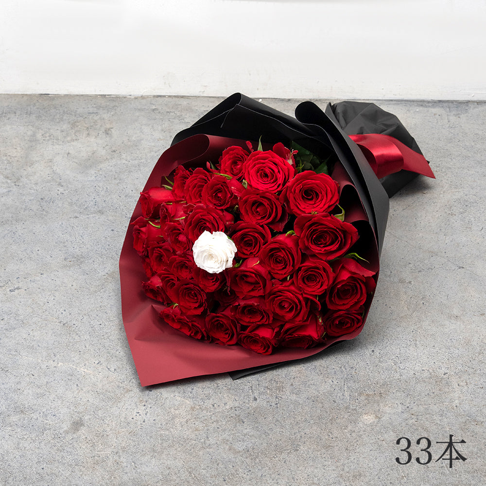 33本のバラを束ねた花束は、3回生まれ変わっても3回愛するという意味があります。