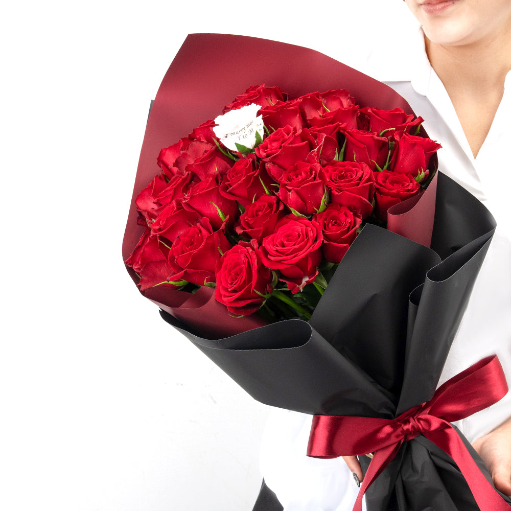 本数が選べる生花バラの花束 花びらメッセージ プロポーズ用