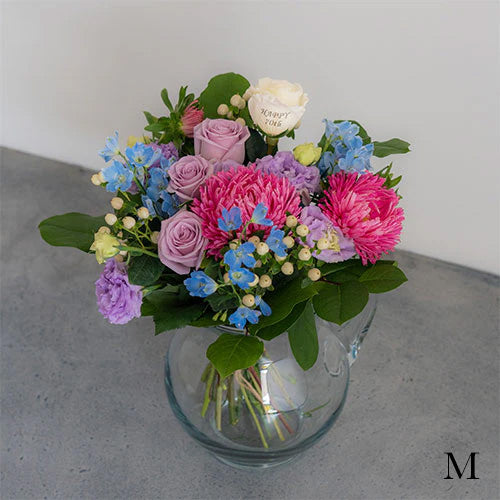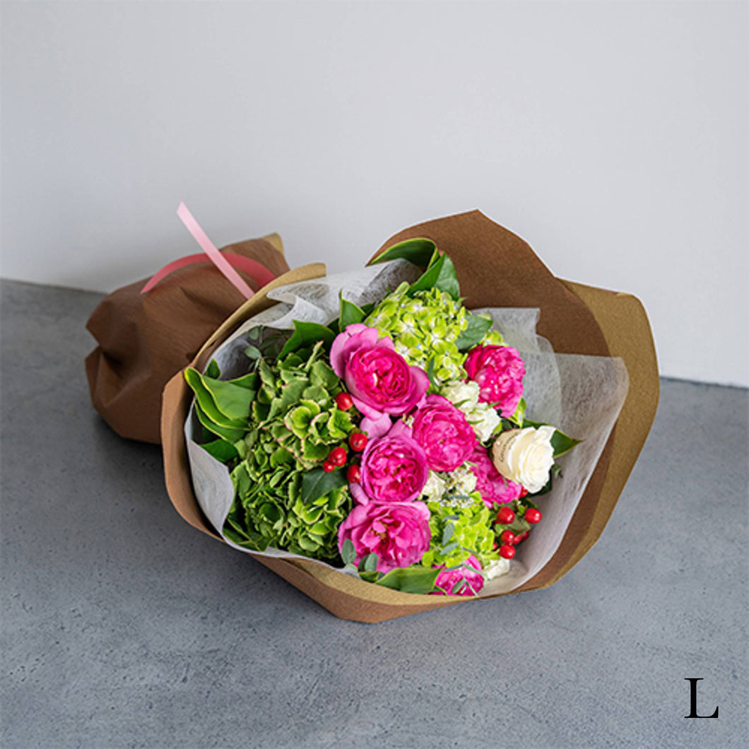 Patisserie+FLowerの専属フラワーデザイナーが、ふんわりかわいいブーケに仕上げます。オプション花びらメッセージを追加可能です。
