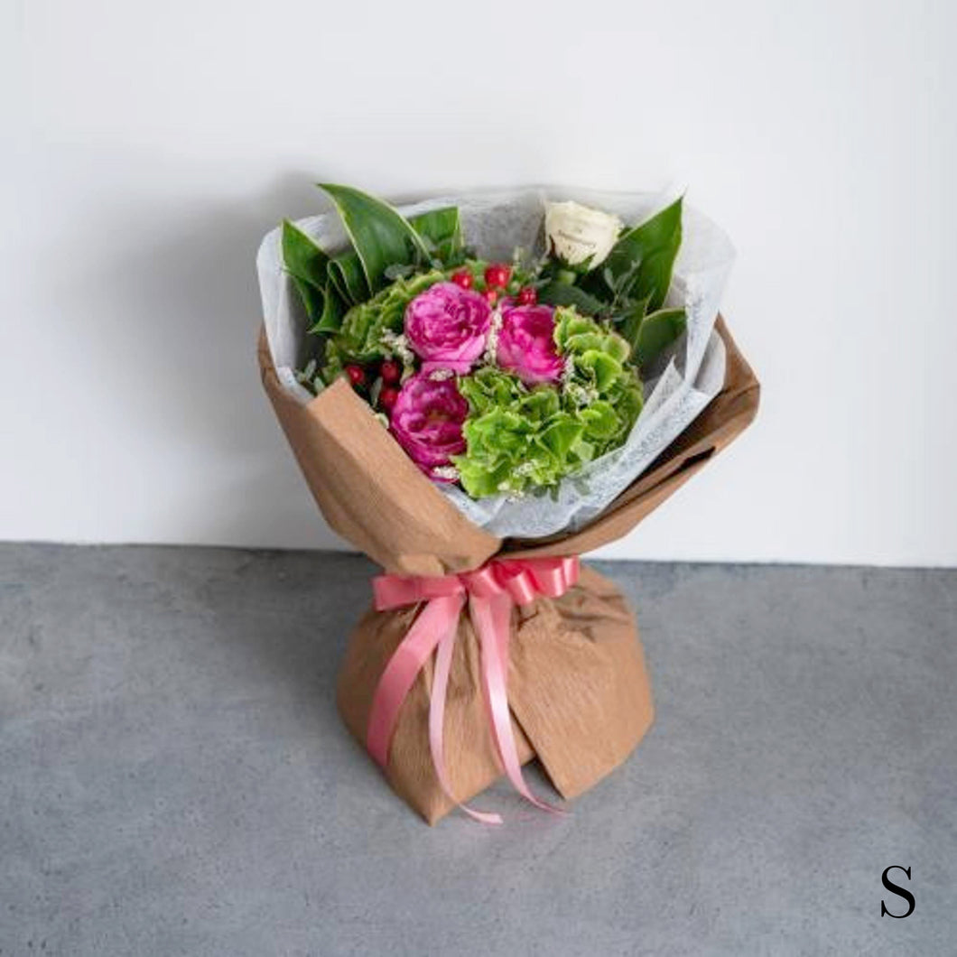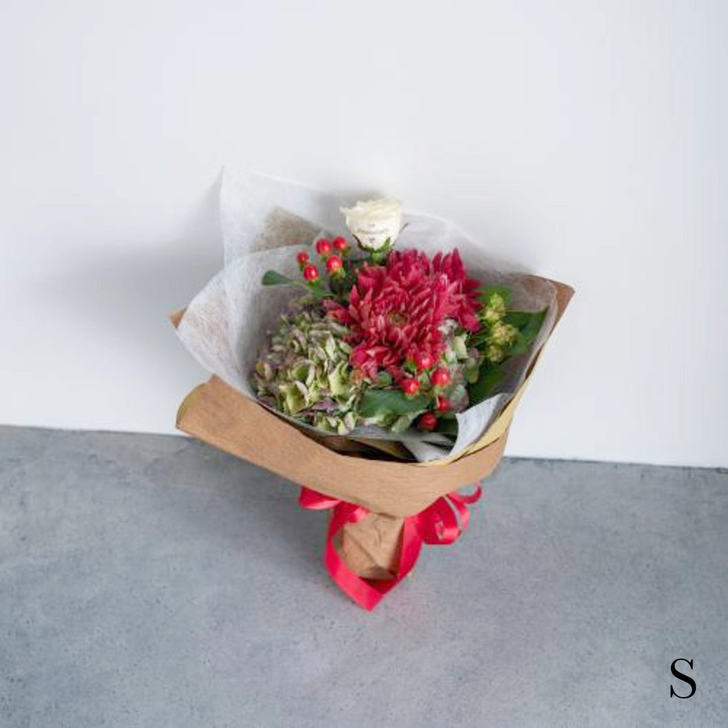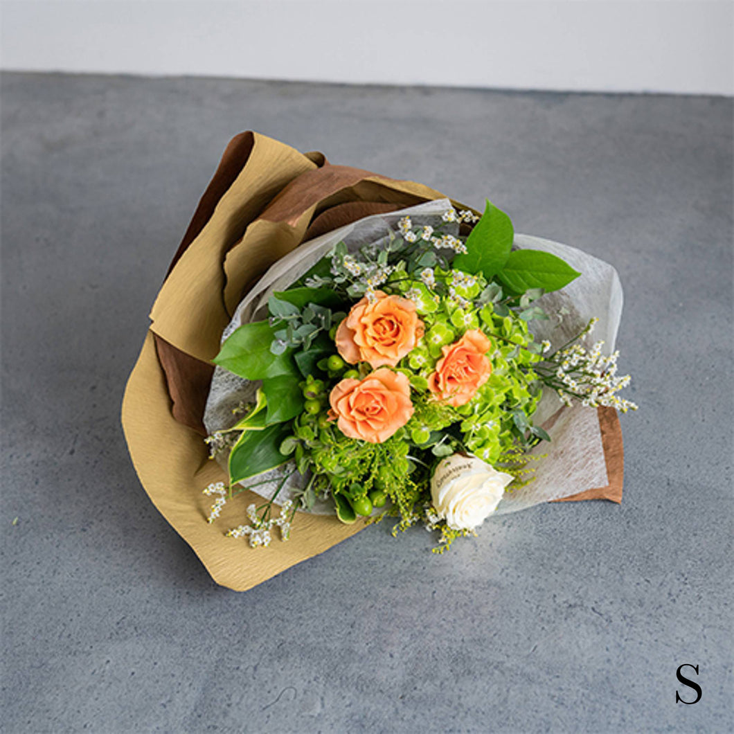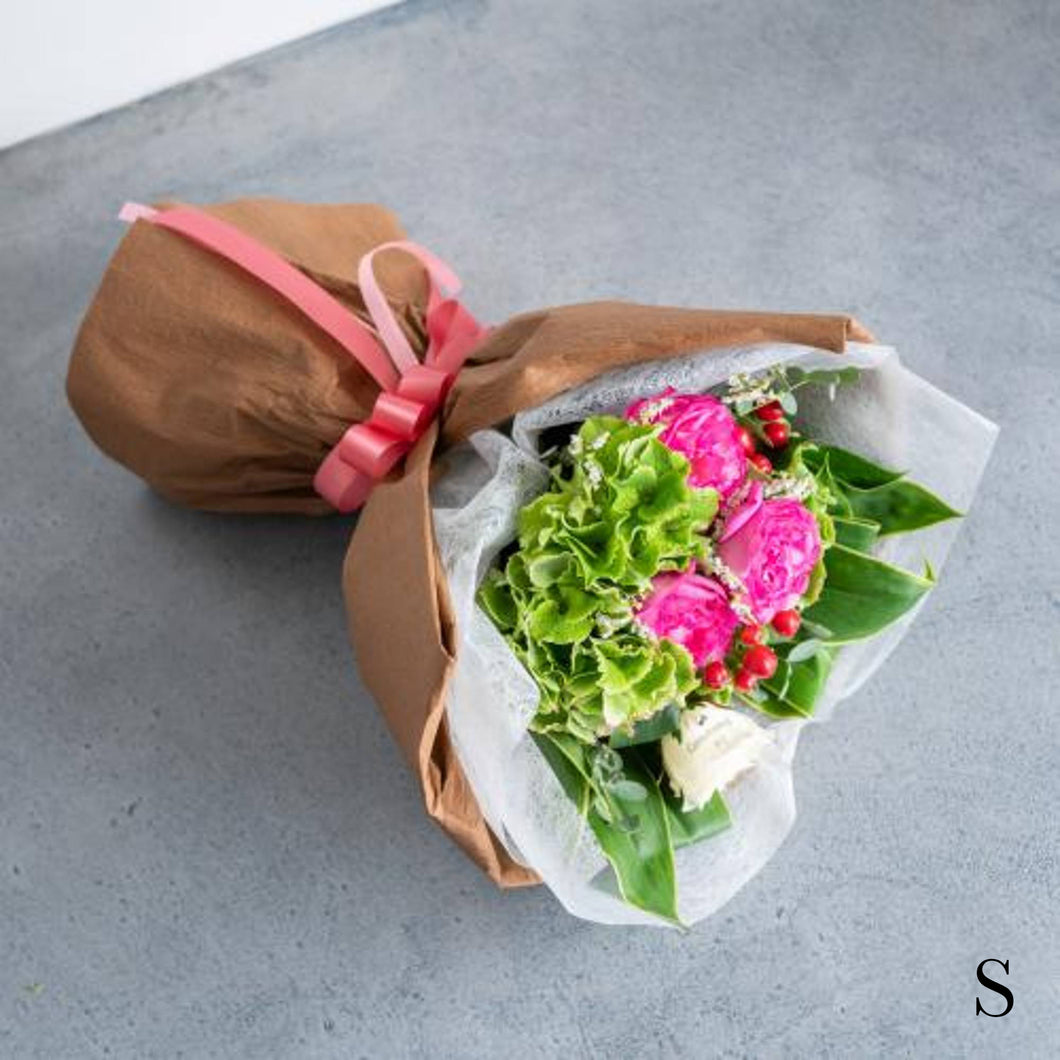今回Sサイズの花束をお願いしましたが、ボリュームがあり、お花の組み合わせも素敵でした。