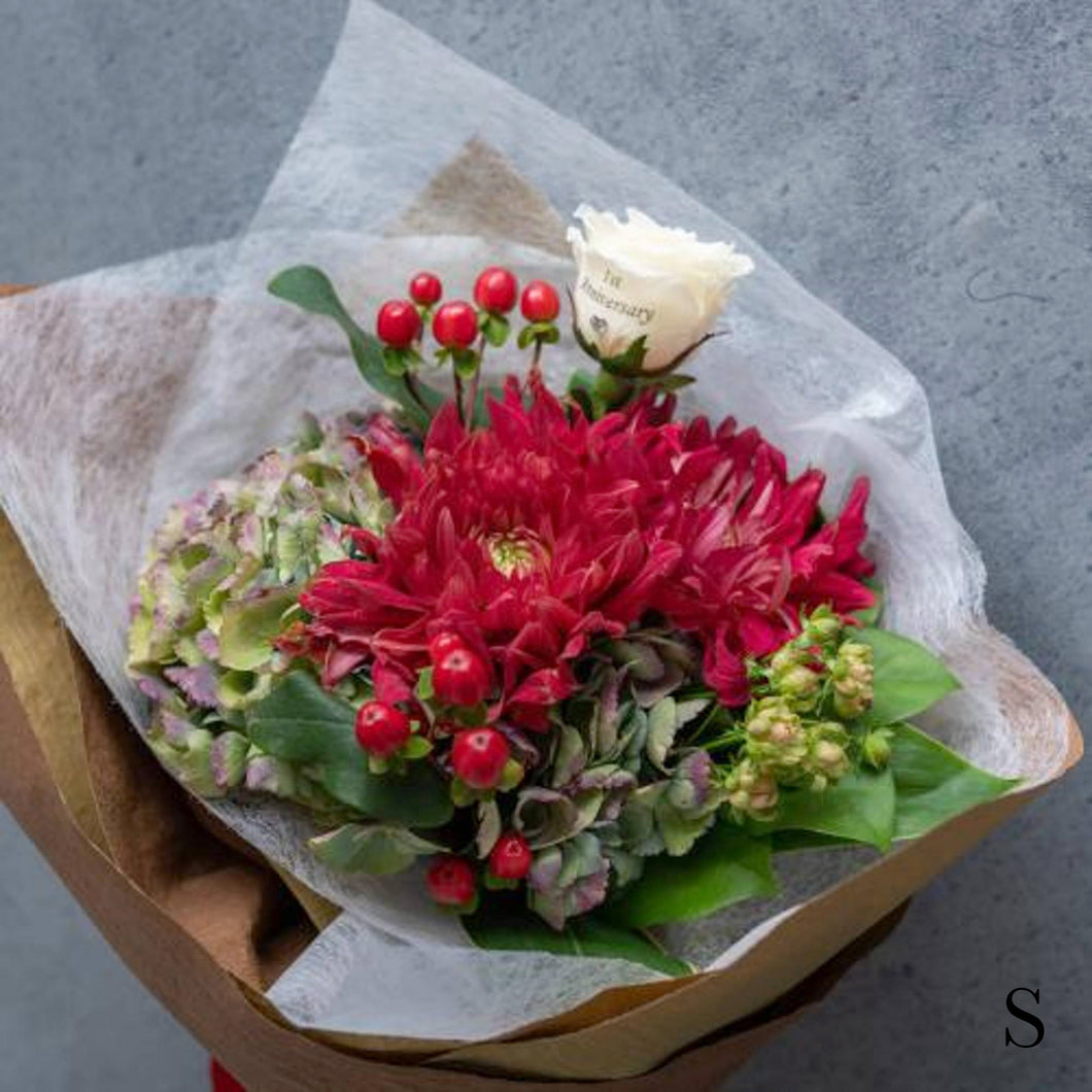 特別なお祝いに ”永遠の幸福”をイメージした、幸福感溢れるブーケ